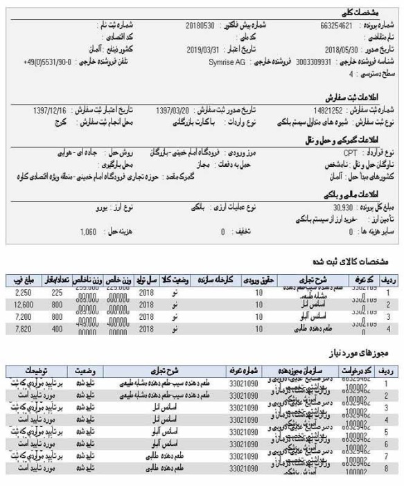 قرمز : کالا نیاز به ارزیابی و تطبیق اسناد و بررسی و کنترل ارزش و تعرفه دارد.در صورت نیاز اقدام به گرفتن مجوزهای سازمان های مربوطه ( استاندارد،بهداشت…)